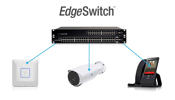 The EdgeSwitch™ features auto-sensing IEEE 802.3af/at and 24V passive PoE to power multiple devices on the network.