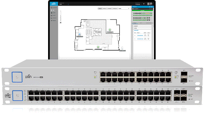 The UniFi® Switch features auto-sensing IEEE 802.3af/at and 24V passive PoE to power multiple devices on the network.